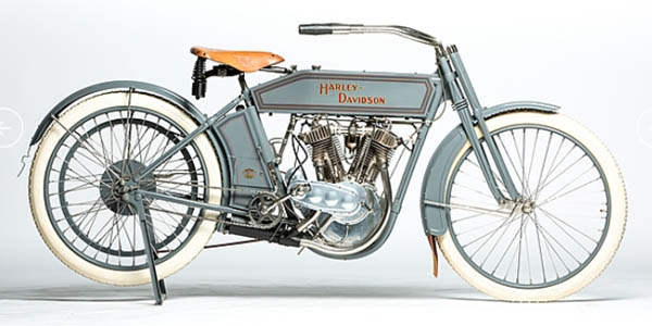 Sold for $215,000 on March 21, 2015 The year 1912 was only the second of Harley-Davidson twin-cylinder production, although they had appeared in H-D’s press as early as 1908. There’s no evidence a twin-cylinder machine was actually sold by the factory until the 1911 model 7D, which differed significantly from the 1908 racer and 1909 Models 5-D (a roadster) and 5-F (the racer). H-D claims 27 of the Model 5 machines were built, but they were likely used for promotion or racing only; no mention of a twin-cylinder model appears in H-D parts books until 1911. As well, the 1908-09 twins used 'atmospheric' inlet valves (i.e. activated by piston suction only, with no camshaft or pushrod), which gave erratic performance in any but a full-throttle position, which would not have suited Harley's already established reputation for reliability and strong running. |