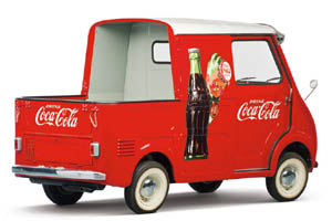 in February 2013 The majority of Goggomobil transporters were vans used by the Deutsche Bundespost, the German postal service. More than 1,500 vans were also purchased by tradespeople and cities for use as service and delivery vehicles. A tiny proportion was bodied in semi-open pickup configuration like this example, which bears the familiar Coca Cola logo. It seems fitting, then, that the most popular collectible logo should be applied to one of the world’s rarest trucks. Of the 3,665 Goggomobil transporter vehicles built between 1957 and 1965, a tiny portion comprised open-back pickups. This vehicle is one of them. Unconventional even among pickups, it has a short canopy behind the cab, offering partial shelter to the truck’s cargo. SPECIFICATIONS |